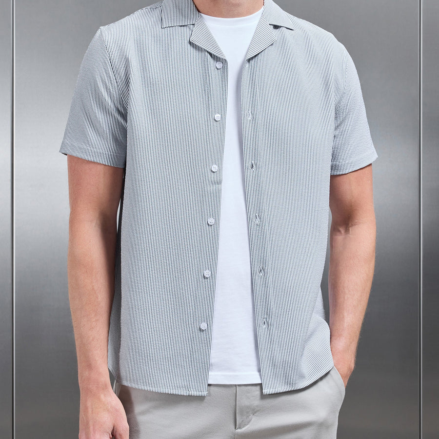 Seersucker Short Sleeve Revere Collar Shirt - Black
