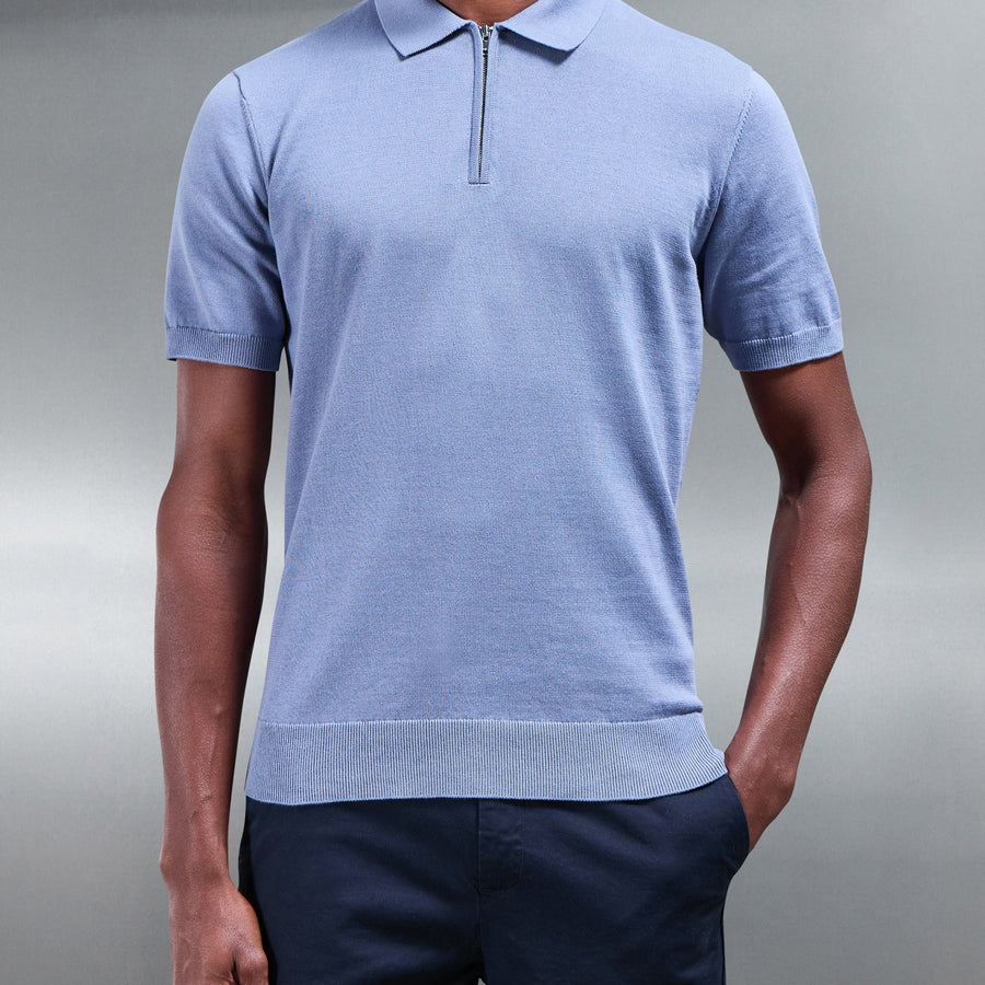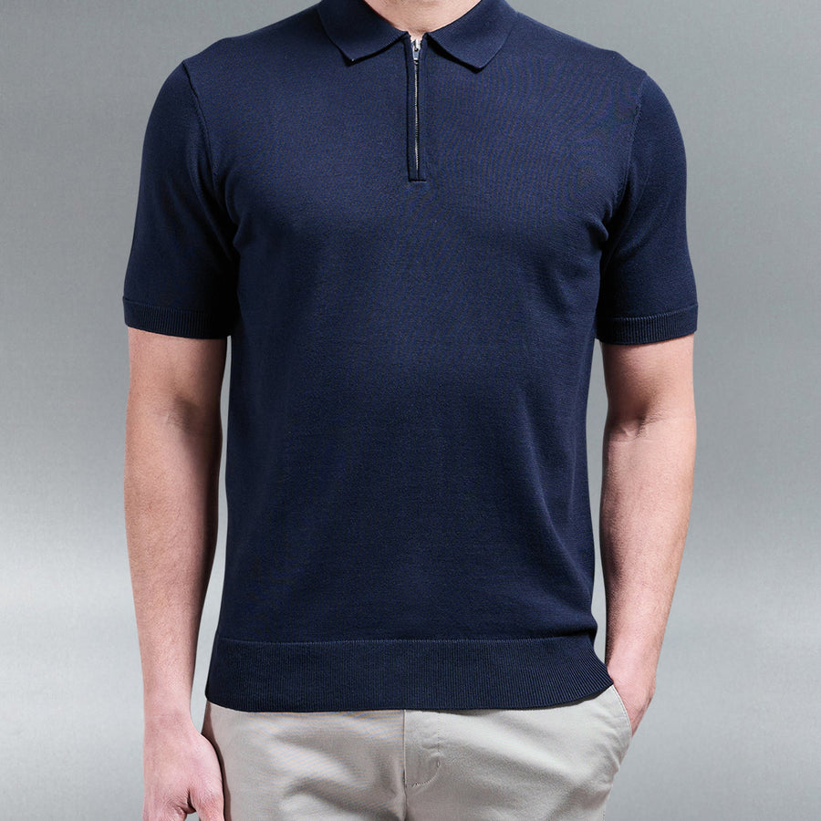 Cotton Knitted Zip Polo Shirt - Oatmeal